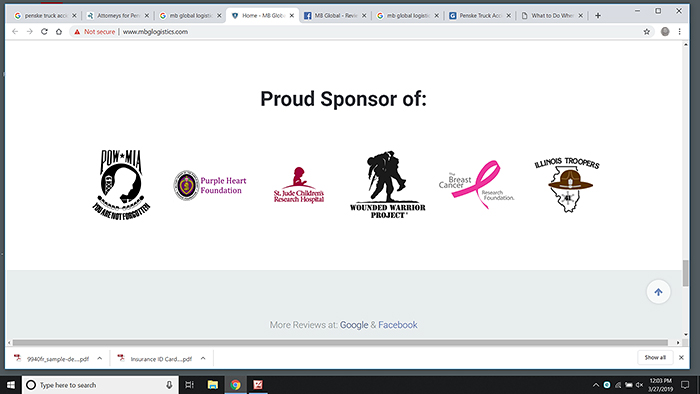 MB Global Logistics? The front page of their websites proclaim their support for POWs and MIAs, The Purple Heart Foundation and the Wounded Warrior Project. Those all appear to be veteran related organizations.