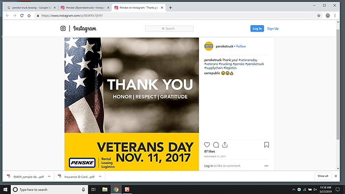 Penske Leasing. "Honor Respect Gratitude" "Thank you veterans" says flag waving American hero Roger Penske.